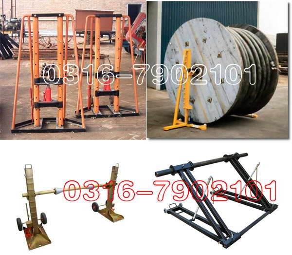 是一种线缆盘展放装置。适用于电力、通信及相关行业敷设线缆的施工作业;产品主要由台架、滚轮、滚轮轴和锁定装置组成,滚轮内装有滚动轴承,线盘转动时灵活轻便。