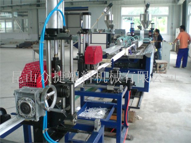 挂壁板适用于家用、办公楼、高档别墅外墙面的防护,表面可覆合PVC、ASA、PMMA等材料,可以用在热或冷、干或湿的地方,能经受长期紫外线照射和狂风暴雨的恶劣气候条件。整套挂壁板生产设备包括双螺杆挤出机,共挤机,压花机,冷却机,真空定型台,冲孔机,牵引机,切割机,翻料架等。我公司可根据客户需要提供生产速度从1m~8m和1m~20m的两种设备和模具