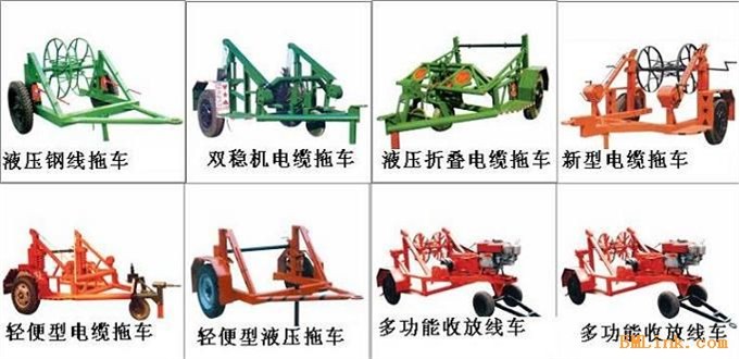 1--电缆拖车:主要试用于电力电信施工工程的电缆线盘的运输收放。操作简单方便安全可靠,多年来深受广大用户的一致好评!