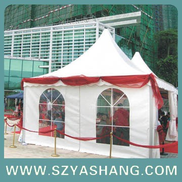 雅上帐篷主体框架为高强度特制中空铝合金结构,连接部位采用国际焊接技术。安装拆卸方便,可调节式基座可应对各种不同类型的场地, 篷房采用进口PVC专用篷布,该篷布具有超强承受力、防拉伸、防雨、防紫外线的良好性能,抗风、防火均达国际安全标准。