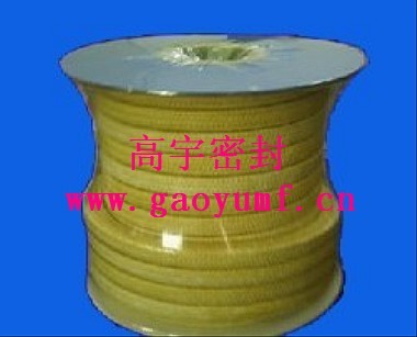 芳纶盘根是由杜邦Kevlar纤维,经浸渍聚四氟乙烯乳液和润滑剂处理编织而成。由于Kevlar纤维其强度和模量有钢丝之称(被称为人造金属线),所以此盘根与其它编织盘根相比,能承受更高的介质压力。在泵系统内还能作为石棉的代替品,其性能比石棉更优异,使用寿命更长等性能。