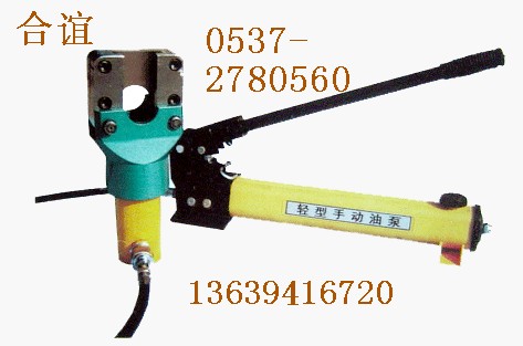 分离式钢丝绳切断机主要由动力源(配电力、手动泵均可),工作油缸,滑轨及切断刀片等几大部分组成