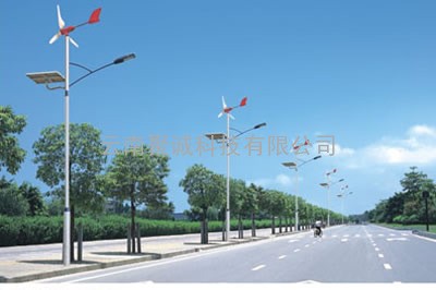 云南科技有限公司生产的新型太阳能(风能)路灯能根据光线强弱自动控制开关,只要有光线,有风它就可以充电,经过日照或者风吹一天,可连续供电照明8小时以上,具有方便、美观、实用的特点。
