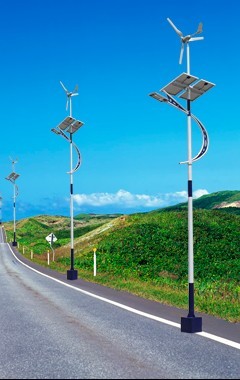 2、单纯风力发电路灯配置: 垂直轴风力发电机单独供电,适用于海边及风力资源较好的城市道路。