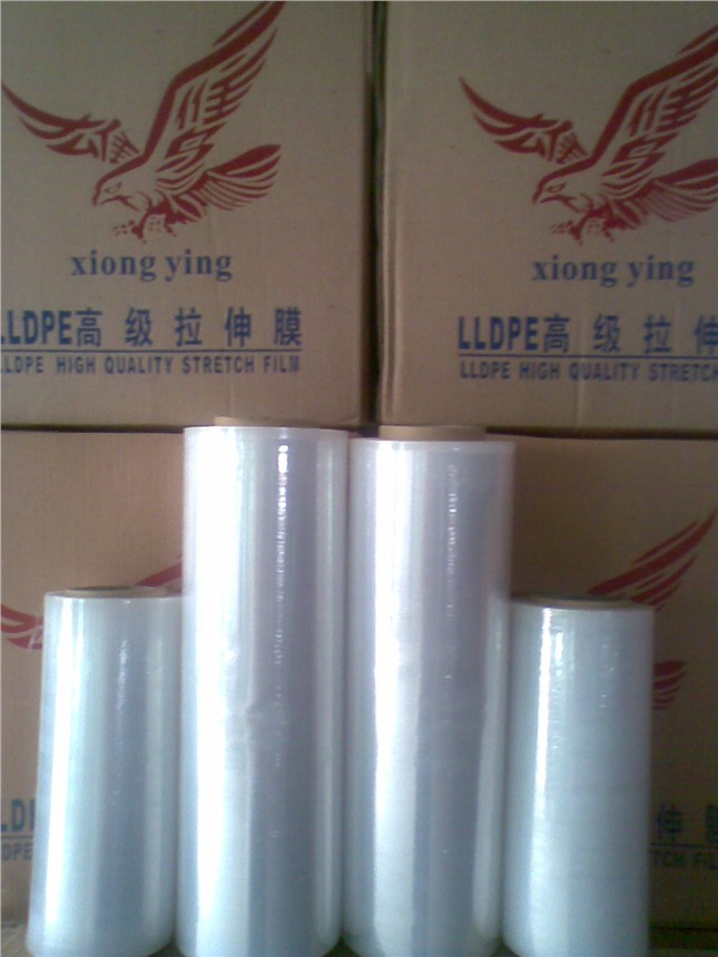 本公司生产拉伸膜 机用拉伸膜缠绕膜、缠绕膜又叫弹性膜,还叫自粘膜、拉伸膜、打包膜。使用时可以利用薄膜自身具有的自粘弹性拉伸缠绕,靠薄膜表面的粘弹性和使用时使用的拉张力把商品紧紧地包裹起来,达到保护商品的目的。 特点:良好的透明性、防尘性,可以把数件不同形状的商品包裹在一起,避免丢失遗漏。 缠绕包装膜可以用于运输包装,例如大型托盘的缠绕包装、集装箱、箱的缠绕包装,也可以用于短距离运输和销售包装,如日用品包装,不锈钢管、塑料管材、型材的缠绕包装,塑料装饰板、卷地板、卷地毯缠绕包装等. 拉伸膜(工业用)保鲜膜具有拉伸性能高,回缩力特强头。透明度高,撕裂强度高和粘性好。用于托盘包装达到防尘,防潮。便于运输。减少产品的破损。提高效率及降低成本之明显效果。