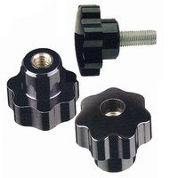 把手:款式多,T型把手,三角把手,十字把手,五星、六星、七星、八星、条纹、波纹、波纹六星把手...材质有塑料,胶木材质。把手可以做内牙,通孔,外牙等。