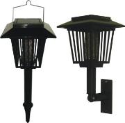 太阳能灭蚊灯,是利用白天将太阳能转换成电能,储存于免维护可充电蓄电池内,晚间系统自动控制器件,根据光照亮度自动开启高压电极网及趋光灯进行工作。紫光灯产生380mm波长,紫外光对蚊子和昆虫具有激背较强的趋光、趋波、趋色、趋性的特性和原理,确定对蚊子的诱导波长,利用放电产生的低温等离子体,紫外光辐射对害虫产生的趋光兴奋效应,引诱害虫扑向灯的光源,光源外配置高压击杀网杀死害虫,达到杀灭害虫的目的。有多种功能选择:选择白灯点亮为装饰花园灯功能;选择紫灯点亮为灭蚊功能;
