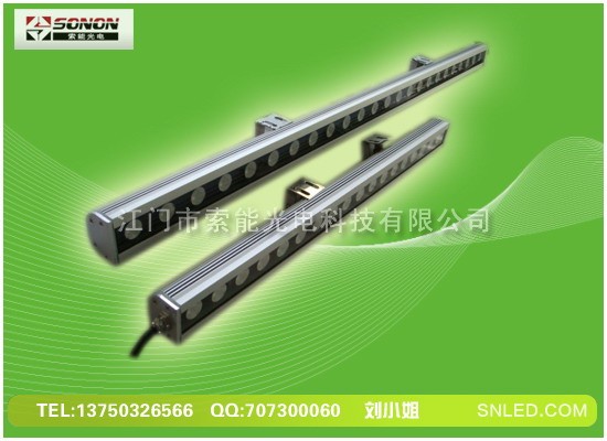 大功率LED洗墙灯是一种以大功率LED为光源,由红、绿、蓝组成混合颜色变化的投射照明灯具,可产生256灰度变化,智能控制器达到同步效果,并可接入DMX控台。用户可自己输入资料进行编程控制。该洗墙灯采用数码管地址,同时该洗墙灯内置固定程序,可实现同步、自联功能。该洗墙灯密封可靠,可调节投光角度、位置,使之处于最佳位置,达到最满意的照明效果。