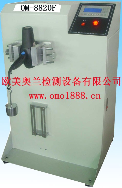 本試驗機符合UL540°IEC72000等有關標準。適用於有關生產廠家和質檢部門對小型家用電器。如電吹風、髮夾等電器聯接處等進行吊重旋扭試驗。本機採用液晶屏全中文顯示,使用方便,全部調節數控方式,角度、速度、次數。硬體採用步進電機+PLC+液晶屏方式,精度高,噪音小,壽命長。