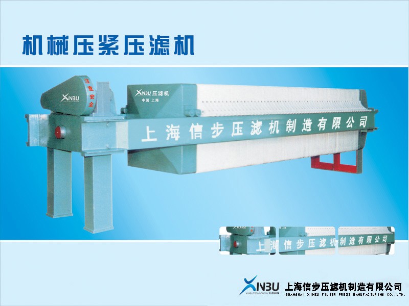 上海信步生产的系列压滤机是一种间歇性固液分离设备,是由滤板、滤框(板框式