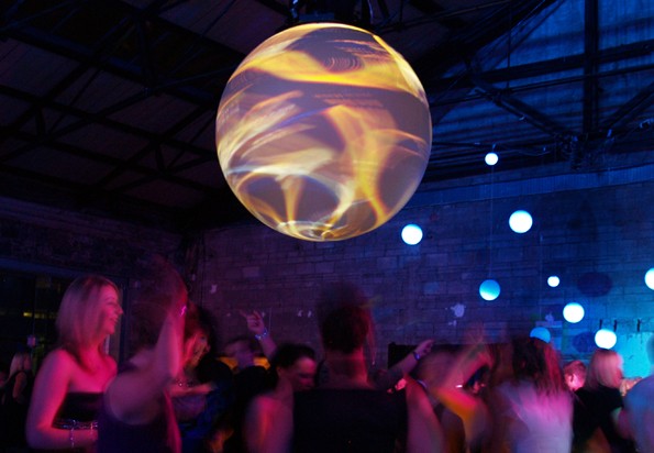 酒吧夜店将影像集成影视素材,可利用vj器材或电脑在娱乐球中播放,能实时营造出一种灯光难以实现的光影特效,球体可坐地或悬挂在空中,舞者每一次举手投足都能带起粼粼波光、轻舞飞扬、七彩炫光,让饮者畅、舞者欢、歌者亢,给消费者带来前所未有的神奇体验,具有超强的视听享受和震撼力。若将其置放于私人派对的会场,流光溢彩的球幕配合现场欢快的气氛,格外赏心悦目,作为特殊装饰品,具有极强的视觉冲击力和形象震撼力。