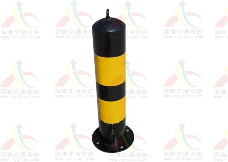 由钢管与法兰盘组成,钢管外贴黄黑反光膜,起到反光警示作用。配有锁芯的立柱,使得在需要的时候可打开锁具,将立柱提起并移动在任何合适的地点,供车辆通行。在交通完毕之后即可将立柱重新置于底座上,上锁后即可避免其他车辆对于自有车位的侵占。可以在车库前、或者其他认为重要的场合前设置,起到保护好车库大门、避免暴力破坏的作用。