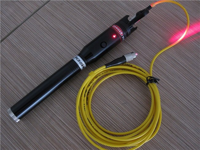 用光纤连接器把红光引入光纤。可用作多芯光缆的芯线对照;检查OTDR无法查到的光纤故障点和因微弯引起的高损耗区段。例如,光纤跳线、尾纤、接线盒中的光纤芯线或裸光纤(素线)等
