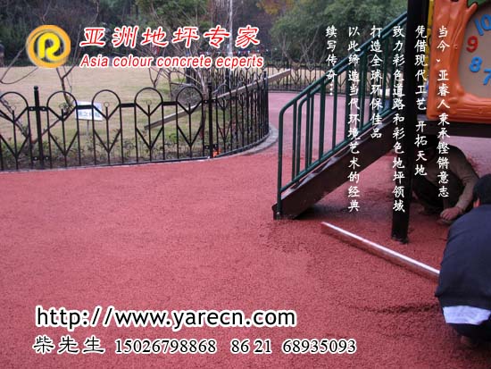 亚睿透水混凝土地坪具有和普通混凝土所不同的特点:容量小、水的毛细现象不显著、透水性大,水泥用量少、施工简单等,因此这种新型的生态建筑材料的优势性不断为人所知,并在道路、市政领域逐渐得到应用。它能够增加渗入地表的雨水,缓解城市的地下水位急剧下降等等的一些城市环境问题,而且色彩缤纷,景观融合,是城市环境建设更加和谐。