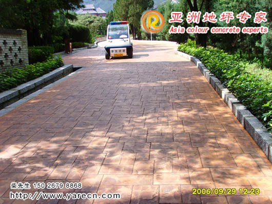 睿龙压印艺术地坪系统面层是一种无毒不挥发的专用化学材料,产品已通过了国家建筑材料检测中心的放射性素比活度检验,以及抗压、抗折、耐磨、抗冻性能的检测。面层的化学材料一般包括三种,按实施次序依次为彩色强化剂、彩色脱膜剂和无色密封剂。