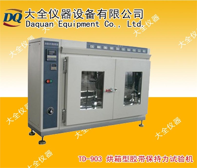 烘箱型膠帶保持力試驗機可模擬一高溫環境,並可紀錄在此高溫環境下,膠帶在承受一定重量之情形下其粘著力可維持之時間。