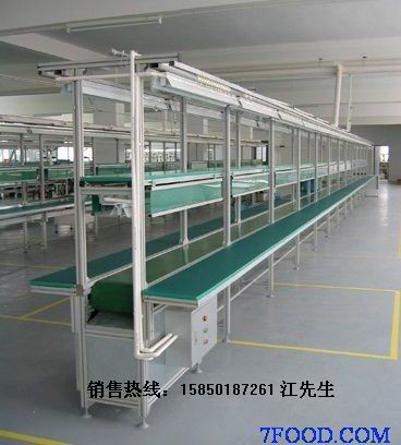 流水线是在一定的线路上连续输送货物搬运机械,又称输送线或者输送机。按照输送系列产品大体可以分为:皮带流水线、板链线、倍数链线、插件线、网带线、悬挂线及滚筒流水线这七类流水线。一般包括牵引件、承载构件、驱动装置、张紧装置、改向装置和支承件等。输送机可进行水平、倾斜和垂直输送,也可组成空间输送线路,输送线路一般是固定的。流水线输送能力大,运距长,还可在输送过程中同时完成若干工艺操作,所以应用十分广泛。