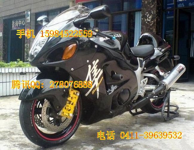 大连万达集团摩托车行出售铃木GSX1300R摩托车价格6000元 主要技术数据发动机:水冷四冲程并列4缸DOHC4阀缸径*行程:81*63mm排气量:1299cc压缩比:11:1点火方式:晶体管起动方式:电起动最大功率:129KW(175ps)/9800rpm最大扭矩:138Nm(14.1kgm)/7000rpm变速比:①2.615②1.937③1.526④1.285⑤1.136⑥1.043一次减速比:1.596二次减速比:2.352长*宽*高:2140*740*1155mm轴距:1485mm座垫高:805mm倾角/拖曳距:24度12分/97mm轮胎尺寸:120/70ZR17 后190/50ZR17干重:215kg燃油容量:22L机油容量:4.2L