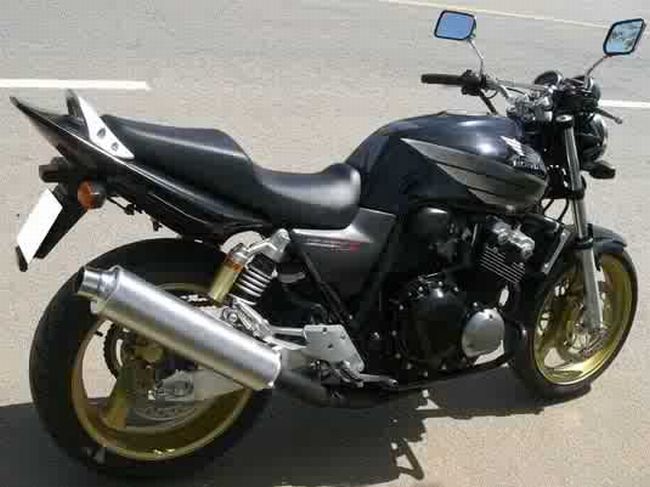 大连万达集团摩托车行出售摩托车本田CB400SF价格4000元 引擎形式 四冲水冷DOHC16活瓣并列四汽缸缸径 x 冲程55.0 mm x 42.0 mm压缩比 11.3 : 1总排气量399 cc最高马力53ps / 11,000rpm最大扭力3.9 kg-m / 9,500rpm车架形式 高拉力钢摇篮车架传动系统 湿式多片6前速链传动燃油供应 化油器 前倾角( R) 25.5 ° (25.15) 拖曳距(T)90 mm (89mm)前悬挂系统 41mm套管油压前叉 后悬挂系统 双筒油压避震 轮胎(前)