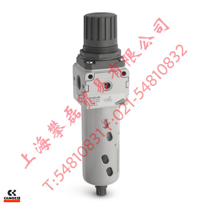 康茂胜CAMOZZI的MC系列减压器/过滤器二联件是将减压器和过滤器设计成一体。采用模块型、金属杯、卡口设计。