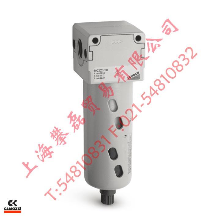 康茂胜CAMOZZI的MC系列主要用于滤除压缩空气中含有的固体颗粒、水份和油份。采用模块化设计,金属杯,卡口式结构。