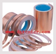 铜箔胶带: 基材:铜箔,油性压克力胶/传导压克力胶;粘性好,附着力强。基材厚度(0.018-0.09mm);性能:具有保温,隔热,防水,粘力佳,耐寒性好,易撕,可消除电磁干扰(EMI),隔离电磁波对人体的危害,避免电压或电流铜箔影响功能,同时还具有抗腐蚀、抗溶剂等特点,耐高温防止自燃(耐溫-10℃—120℃);主要用于电脑显示器电脑周边线材与变压器制造中央空调管线,抽烟机,冰箱,热水器等的管线接缝,精密电子产品、电脑设备、电线、电缆等;高频传输时,隔离电磁波干扰。*规格可根据订单加工分切、模切、冲型。