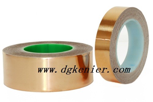 山东单导电铜箔胶带:基材:铜箔,油性压克力胶,粘性好,附着力强。性能:具有保温,隔热,防水,粘力佳,耐 寒性好,易撕,可消除电磁干扰 (EMI),隔离电磁波对人体的危害,避免电压或电流影响功能,对于静电泄放有良好的效果,耐高温防止自燃;主要用于电脑显示器,电脑周边线材与变压器制造, 中央空调管线,抽烟机, 冰 箱,热水器等的管线接缝,精密电子产品、电脑设备、电线、电缆等;高频传输时隔离电磁波干扰,耐高温防止自燃。*规格可根据订单加工分切、模切、冲型。