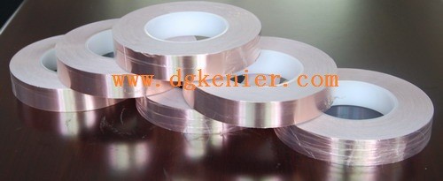 单导铜箔胶带:基材:铜箔,油性压克力胶,粘性好,附着力强。性能:具有保温,隔热,防水,粘力佳,耐 寒性好,易撕,可消除电磁干扰 (EMI),隔离电磁波对人体的危害,避免电压或电流影响功能,对于静电泄放有良好的效果,耐高温防止自燃;主要用于电脑显示器,电脑周边线材与变压器制造, 中央空调管线,抽烟机, 冰 箱,热水器等的管线接缝,精密电子产品、电脑设备、电线、电缆等;高频传输时隔离电磁波干扰,耐高温防止自燃。*规格可根据订单加工分切、模切、冲型