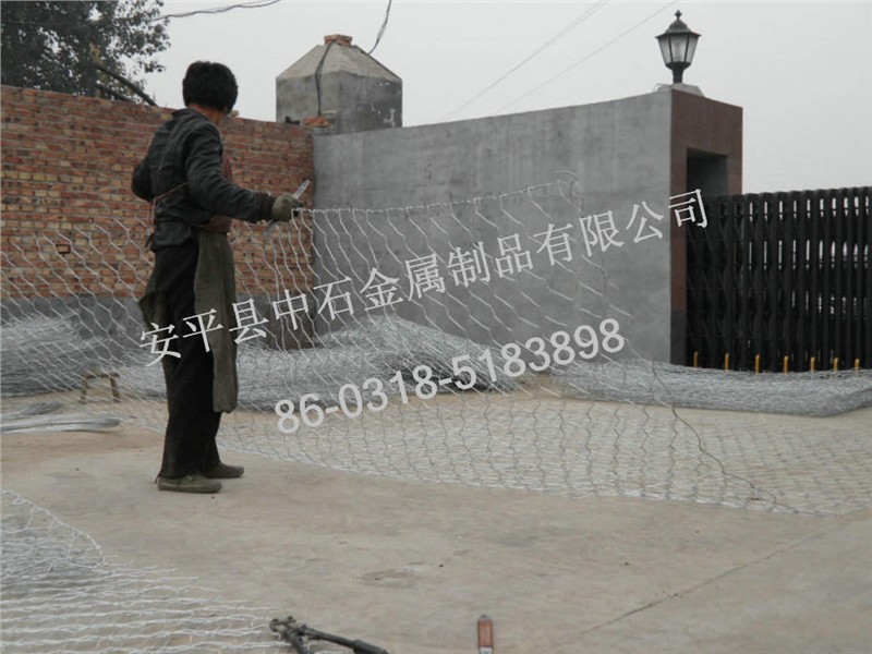 河北省安平县中石石笼网厂常年供应镀锌格宾网、PVC格宾网、铝锌合金石笼网,152 0338 7007.石笼网又名格宾网,是金属线材编织的角形网(六角网)制成的网箱,使用的金属线径是根据六角形的大小而不同.如果是金属镀层的金属线六角形,则使用线径为2.0mm到4.0mm的金属线,如果是PVC包覆的金属线编织的六角网,则使用外径为3.0mm到4.5mm的PVC(金属)线.外框边缘的线则使用比六角网线粗一号的线.