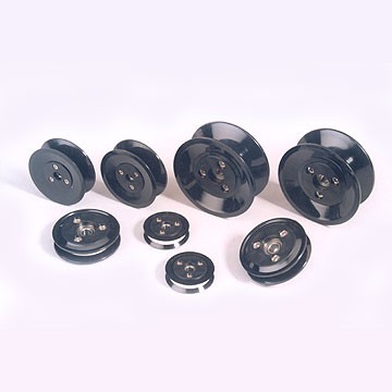 线轮又分为过线轮、陶瓷线轮及防跳线器。过线轮的结构是在瓷圈及轴承的两侧配上两片尼龙侧板,也有不加側板直接使用的叫陶瓷线轮。防跳线器的结构是在瓷圈及轴承的两侧配上两片陶瓷侧板,陶瓷侧板上带有反钩,或滚珠,可防止丝,线跳出瓷圈上方。
