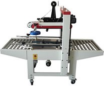 2、该款封箱机采用即贴胶带封纸箱封口,经济快速、容易调整,可一次完成上、下封箱动作,采用印字胶带,更可提高产品印象。