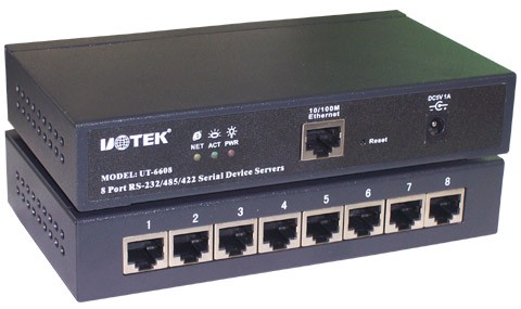 产品名称: TCP/IP转八口RS-232/485/422串口服务器 型号:UT-6608