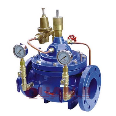 400X流量控制阀由主阀、流量调节阀、针阀、导阀、球阀、微形过滤器和压力表组成水力控制接管系统。利用水力自动操作,控制和调节主阀开度,使通过主阀的流量保持不变。