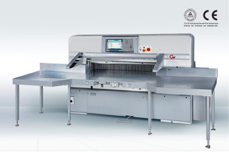 GUOWANG 高速切纸机CL系列根据目前世界上最先进的 同行业技术标准,按最新的人体工程学改造设计而成。 显示屏采用AU公司的彩色TFT15英寸工业触摸屏,配置多语言操作界面和USB接口。电脑部分为美国的工业级电脑,保证了可靠性与稳定性。可实现多机通 信及远程计算机管理 ,可实现远程诊断功能 ,并设有易懂的快捷键。 送纸马达采用日本伺服电机,配合高精度送纸结构,实现无级调速,最高速度可达18米/分钟。送纸定位精度能够达到0.01mm.,裁切速度可达45次 /min.。配备了自动换刀辅助的功能,能实现轻松换刀操作。压纸器的压力在150daN 到7000daN 范围内可调,完全达到欧洲CE安全标准。