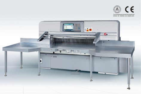 GUOWANG 高速切纸机CL系列根据目前世界上最先进的 同行业技术标准,按最新的人体工程学改造设计而成。 显示屏采用AU公司的彩色TFT15英寸工业触摸屏,配置多语言操作界面和USB接口。电脑部分为美国的工业级电脑,保证了可靠性与稳定性。可实现多机通 信及远程计算机管理 ,可实现远程诊断功能 ,并设有易懂的快捷键。 送纸马达采用日本伺服电机,配合高精度送纸结构,实现无级调速,最高速度可达18米/分钟。送纸定位精度能够达到0.01mm.,裁切速度可达45次 /min.。配备了自动换刀辅助的功能,能实现轻松换刀操作。压纸器的压力在150daN 到7000daN 范围内可调,完全达到欧洲CE安全标准。