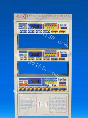 GD-907微粒液晶智能程控蓄电池修复系统,是我公司最新推出的可持续升级芯片蓄电池修复设备,设备采用最新微粒数字程控技术.微粒数字程控电池修复仪属于我单位独立研发的高科技设备,专利号:200620011778.3任何单位个人严禁仿冒。是专门针对于电动车、汽车、摩托车进行检查与修复的设备,本设备采用国际领先的微粒泼修复技术,修复效果能是普通修复设备的基础上提高93%。是修复各种铅酸电池最佳的产品。本设备修复检测一体,高清晰液晶宽屏显示,工作状态一目了然,设备工作时,电池的电压、电流、电阻、容量、时间等技术参数清晰可见,全智能化操作,操作流程语音提示,避免了操作错误对设备带来的损坏。