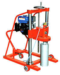 混凝土钻孔取芯机有电动HZ-15型普通与多功能型和汽油机HZ-20型混凝土取芯机(汽油机分5.5马力/9马力/13马力)。本公司备有多种规格、多种尺寸的混凝土取芯机钻头。技术参数:1、钻孔直径200mm(50mm、100mm 150mm) 2、钻孔深度700mm 3、可对砼试件进行切、割、磨平、一机多用。