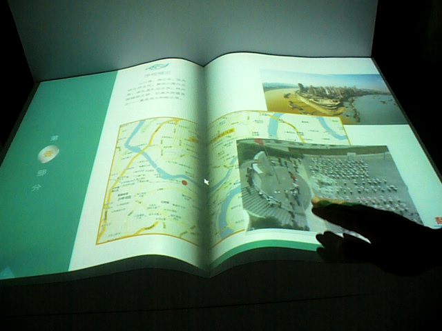 虚拟翻书(也叫电子翻书、隔空翻书、空中翻书、魔幻书)在参观者面前呈现一本等离子电视方式或以投影机投影成像方式的虚拟书,参观者只需要站在展台前方,用手在空中挥动,即可实现翻书动作,并对页内内容进行点击,特有的翻书和查询功能。在书桌上、地面上勿需任何电线电缆或传感系统,安装维护非常方便.www.feiran/touch.com /