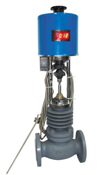 自力式电控温度调节阀(适用于较大口径及导热油控制),该阀最大的特点只需普通220V电源,利用被调介质自身能量,直接对蒸汽、热水、热油与气体等介质的温度实行自动调节和控制,亦可使用在防止对过热或热交换场合,该阀结构简单,操作方便,选用调温范围广、响应时间快、密封性能可靠,并可在运行中随意进行调节,因而广泛应用于化工、石油、食品、轻纺、宾馆与饭店等部门的热水供应。