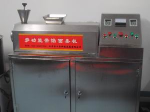 创业致富小本生意金日来七彩面条机 创业致富小本生意楚留香七彩面条机 创业致富小本生意红麦穗七彩面条机 真奇妙!!588米长的带馅面条你见过吗???北京金日来科技发展公司在我国独家研制成功的专利设备--金日来带馅面条机具有投资小,见效快,产品独特的显著特点,在跨入2008年的第一天,金日来公司特的方式庆祝奥运年的到来,用金日来带馅面条机一次性连续生产35根直径为3.3毫米的带馅面条长达588米,35根长度达到588米的面条。总重量高达705斤!!带馅面条原是清宫御膳房专有食品,相传是慈禧皇太后为生日寿筵下令制作,因其制作工艺复杂费工费料,且是大内高手手工操作, 所以除少数皇族享用外,一般官员和平民百姓无缘问津!!金日来公司奉献爱心,将705斤带馅面条分送到7个福利敬老院,免费让那些孤单老人们品尝这宫廷御膳食品,这些老人们喜笑颜开,一边吃着带馅面条,一边说‘想不到俺们这么有口福啊,在有生之年,还能吃到只有老佛爷才能吃到的带馅面条啊’ 带馅面条的文化渊源 金日来带馅面条机的介绍 金日来牌多功能带馅面条机的显著特点: 1、该机采用现代优良原理,内部结构、外观效果更趋合理。 2、利用现代力学原理,对其传动功能进行更新,使其在不改变功率情况下,产量大为增加。 3、一机多用,开发面食新品种,除生产带馅面条机,还可生产意大利空心面、疙瘩面、龙须面、带馅软麻花、开心果、金酥饼以及绿色小食品等。 4、经济实用,机型虽然更新,但价格更优惠更接近大众化需求水平。 金日来牌多功能带馅面条机使用220V照明电,电机功率1.5KW带馅面条直径3.3-3.8毫米占地面积5平方米两人操作班产800斤左右。 金日来牌多功能带馅面条机外型尺寸(长*宽*高650mm*500mm*980mm,机器自重175公斤。 面条规格:带馅面条(馅径/直径)1.2/3.3-2.8龙须面 1.2mm疙瘩面6mm金日来小康”型带馅面条机全新上市!!!