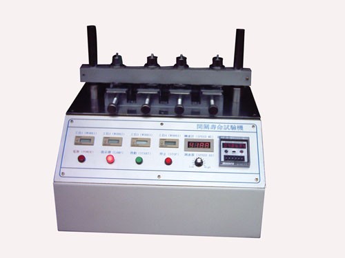 按键寿命试验机适用于多种开关或小型成品,作开关或按键寿命试验.具有速度可调,次数设定,并同时四个工位做测试,达到设定次数后数据保持。荷重采用加载砝码方式,保证测量准确度。