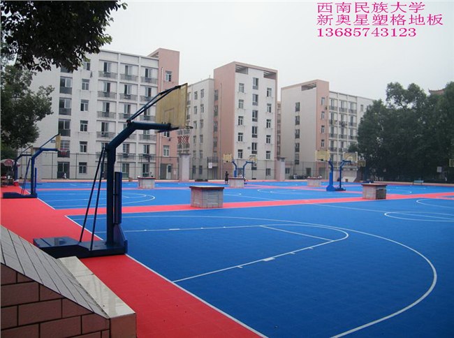 1、安装简单,体现它的“拼装”性能,基本属于纯手工作业,不需要专业人员安装。工期短,一个600㎡的篮球场,包括画线四个人一天半即可施工完毕。对基础要求也不高,平整水泥地即可。