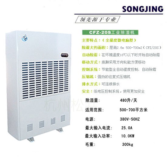 CFZ-20S 除湿量:480升/天(20kg/h) 适用面积:550~700平方米