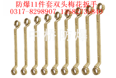 铝铜合金防爆工具是用贵重稀有金属合成、熔炼、锻造而制成工具后,表面呈黄色。工作面硬度HRC25°以上,抗拉强度δ b> 75-85kgf/mm,其它技术指标全部达到国外同类产品先进水平。在易燃气体乙烯(浓度7.8%)空间连续使用均确保安全,冲(撞)击、摩擦、落锤均不产生火花爆炸。