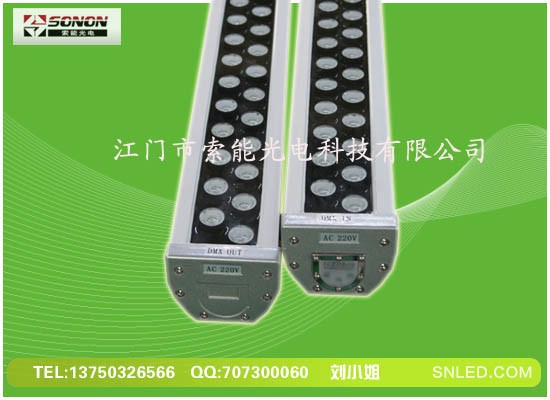 大功率LED洗墙灯是一种以大功率LED为光源,由红、绿、蓝组成混合颜色变化的投射照明灯具,可产生256灰度变化,智能控制器达到同步效果,并可接入DMX控台。用户可自己输入资料进行编程控制。该洗墙灯采用数码管地址,同时该洗墙灯内置固定程序,可实现同步、自联功能。该洗墙灯密封可靠,可调节投光角度、位置,使之处于最佳位置,达到最满意的照明效果。(缔造绿色低碳生活,选用索能LED灯饰)