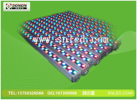 大功率LED洗墙灯是一种以大功率LED为光源,由红、绿、蓝组成混合颜色变化的投射照明灯具,可产生256灰度变化,智能控制器达到同步效果,并可接入DMX控台。用户可自己输入资料进行编程控制。该洗墙灯采用数码管地址,同时该洗墙灯内置固定程序,可实现同步、自联功能。该洗墙灯密封可靠,可调节投光角度、位置,使之处于最佳位置,达到最满意的照明效果。(缔造绿色低碳生活,选用索能LED灯饰)