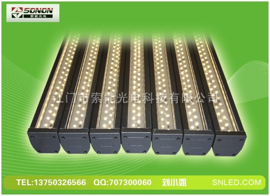 大功率LED洗墙灯是一种以大功率LED为光源,由红、绿、蓝组成混合颜色变化的投射照明灯具,可产生256灰度变化,智能控制器达到同步效果,并可接入DMX控台。用户可自己输入资料进行编程控制。该洗墙灯采用数码管地址,同时该洗墙灯内置固定程序,可实现同步、自联功能。该洗墙灯密封可靠,可调节投光角度、位置,使之处于最佳位置,达到最满意的照明效果。(缔造绿色低碳生活,选用索能LED灯饰)