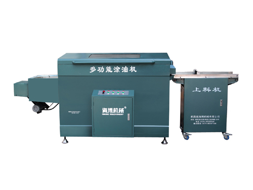 本机根据锥型转笼原理设计研制而成的国家专利产品,以机械代替人工进行涂油,使产品减少碰磕伤,并能把防锈油稀薄而均匀地喷涂到工件上,能大大节约涂油的成本,为用户减少了劳动强度,实现了无级调速、涂油、烘干为一体的自动流水生产线。