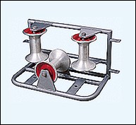 三轮转角滑轮简称转角滑轮,可固定在角钢横担转角处放线,分左向和右向两种,转角滑轮结构简单,实用可靠。转角滑轮用于电缆延放改变方向处 , 保护电缆不受磨擦,滑轮分为铝轮和尼龙轮,轮内为高速轴承,是滑轮转速更快。