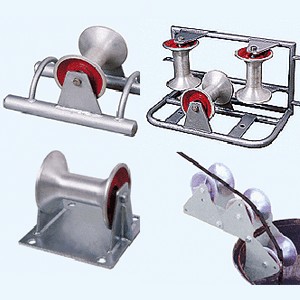 平地放线滑车:适用于各种条件的电缆辅设, 用于延放电缆为单轮直线式,轮中有高速轴承,不伤电缆。 平地放线滑车按材质分有铝合金地缆滑车和尼龙地缆滑车,样式分为平管式地缆滑车和管式滑车。
